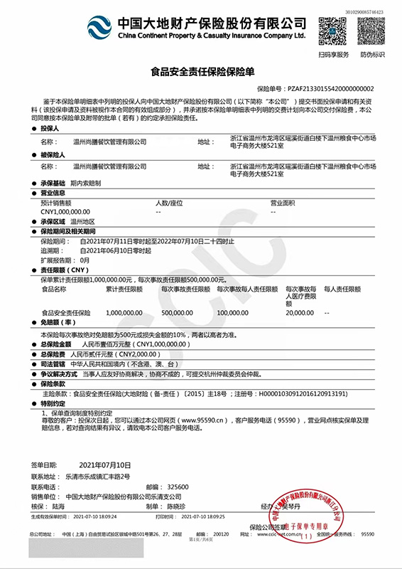 首頁>企業(yè)資質(zhì) > 食品安全責(zé)任保險(xiǎn)保險(xiǎn)單企業(yè)資質(zhì)